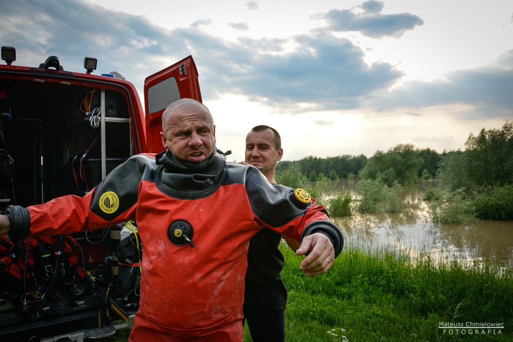 Wczoraj około godziny 18:30, SKKM otrzymało zgłoszenie o przeciekach ze śluzy na osiedlu Nagnajów w Tarnobrzegu, na miejscu działał już zastęp z miejscowej OSP, który przepompowywał wodę, z rowu do rzeki Wisły. Konieczne było zatkanie śluzy od strony Wisły ponieważ coś blokowało klapę, na miejsce zadysponowany został zastęp z JRG Tarnobrzeg wraz z 3 nurkami.