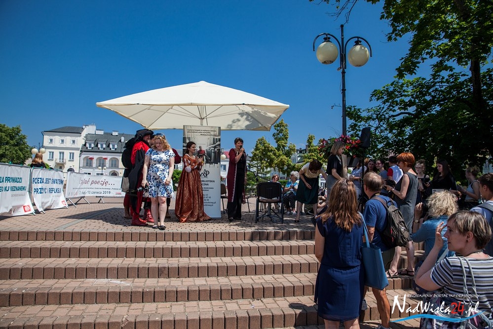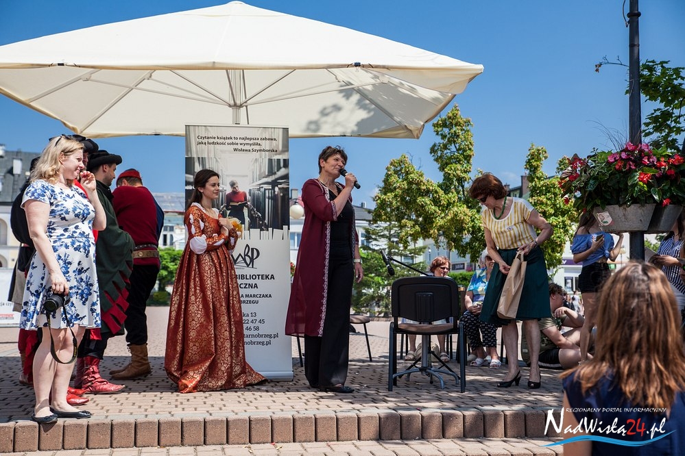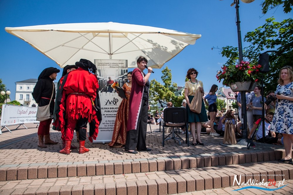 Następnie po wystrzale z broni czarnoprochowej rozpoczęto poetycki flash mob. Na tarnobrzeskim Rynku zaopatrzeni w tomiki poezji, licznie zgromadzeni uczniowie z tarnobrzeskich szkół, uczestnicy Domu Dziennego Pobytu, harcerze rozpoczęli głośne czytanie. Przez prawie dwie minuty mieszały się strofy Wandy Chotomskiej, Czesława Janczarskiego, Wisławy Szymborskiej, Juliana Tuwima, Lecha Konopińskiego i innych. Każdy czytający otrzymał pamiątkowy buton.