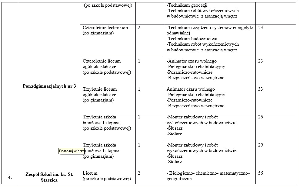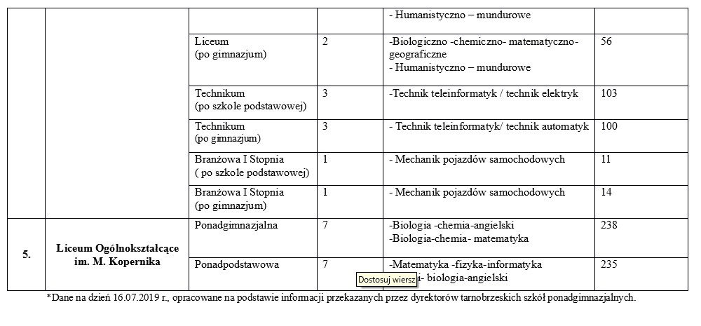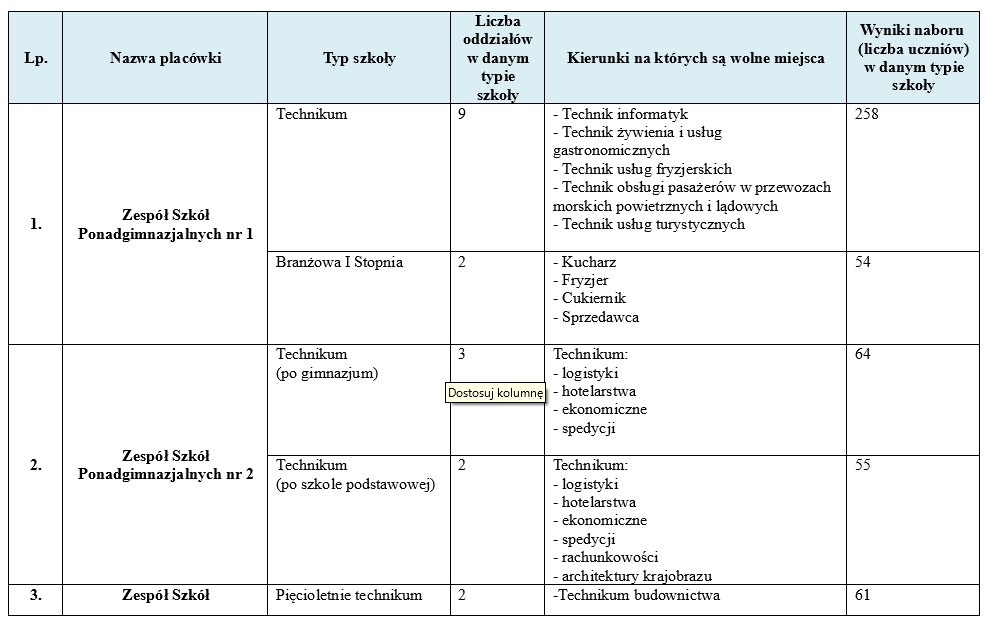 Szczegóły dotyczące wolnych miejsc w tarnobrzeskich szkołach ponadgimnazjalnych: informacja