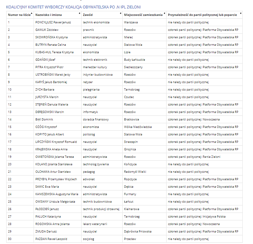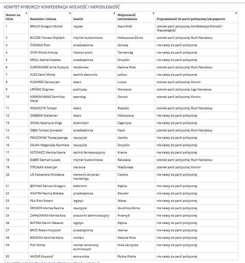 PEŁNE LISTY Z OKRĘGU NR 23 W GALERII LUB TUTAJ