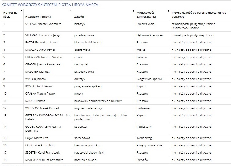 Z kolei z Komitetu Wyborczego Skuteczni Piotra Liroya – Marca do Sejmu kandyduje Ewa Bujak, sprzedawca, bezpartyjna, nr 15.