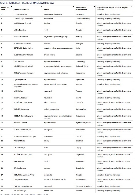 Na liście Polskiego Stronnictwa Ludowego znalazł się jeden tarnobrzeżanin, bezpartyjny dyrektor przedszkola Paweł Cieśla (nr 9).