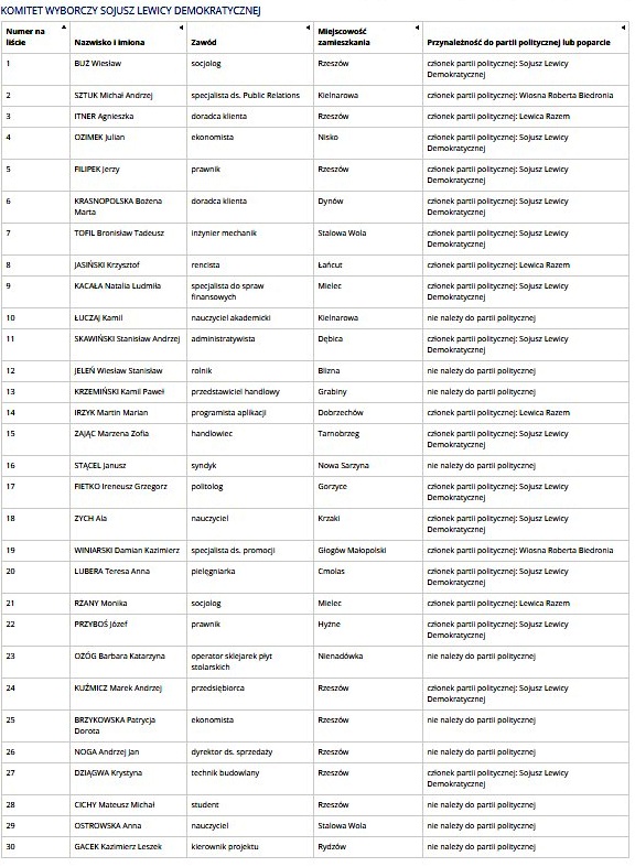 Jedna tarnobrzeżanka – Zofia Zając, handlowiec startuje do Sejmu z listy Komitetu Wyborczego Sojuszu Lewicy Demokratycznej ( nr 15).