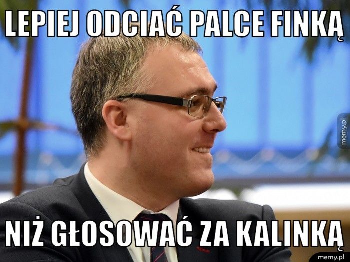 Rozumiem że pan prezydent ma osobisty uraz do K. Kalinki i wszyscy to rozumieją. Ale dla mieszkańców jest ważne tylko jedno, mieć posła z Tarnobrzega. A tym posłem może być tylko K.Kalinka, nikt inny z 7 osób kandydujących nie jest w stanie zdobyć tylu głosów co on. Czy można sobie pozwolić aby po raz kolejny wszystkie miasta sąsiednie miały swojego posła,a Tarnobrzeg nie miał i był gorszy od reszty i dlaczego ma być gorszy? Przez takie głupie memy znowu możemy nie mieć posła,jako wyjątek w całej okolicy,wszystkie większe miasta w okolicy takie jak Sandomierz, Stalowa Wola,Mielec,Staszów,Opatów,Ostrowiec,Kolbuszowa,Kraśnik, mają posłów!