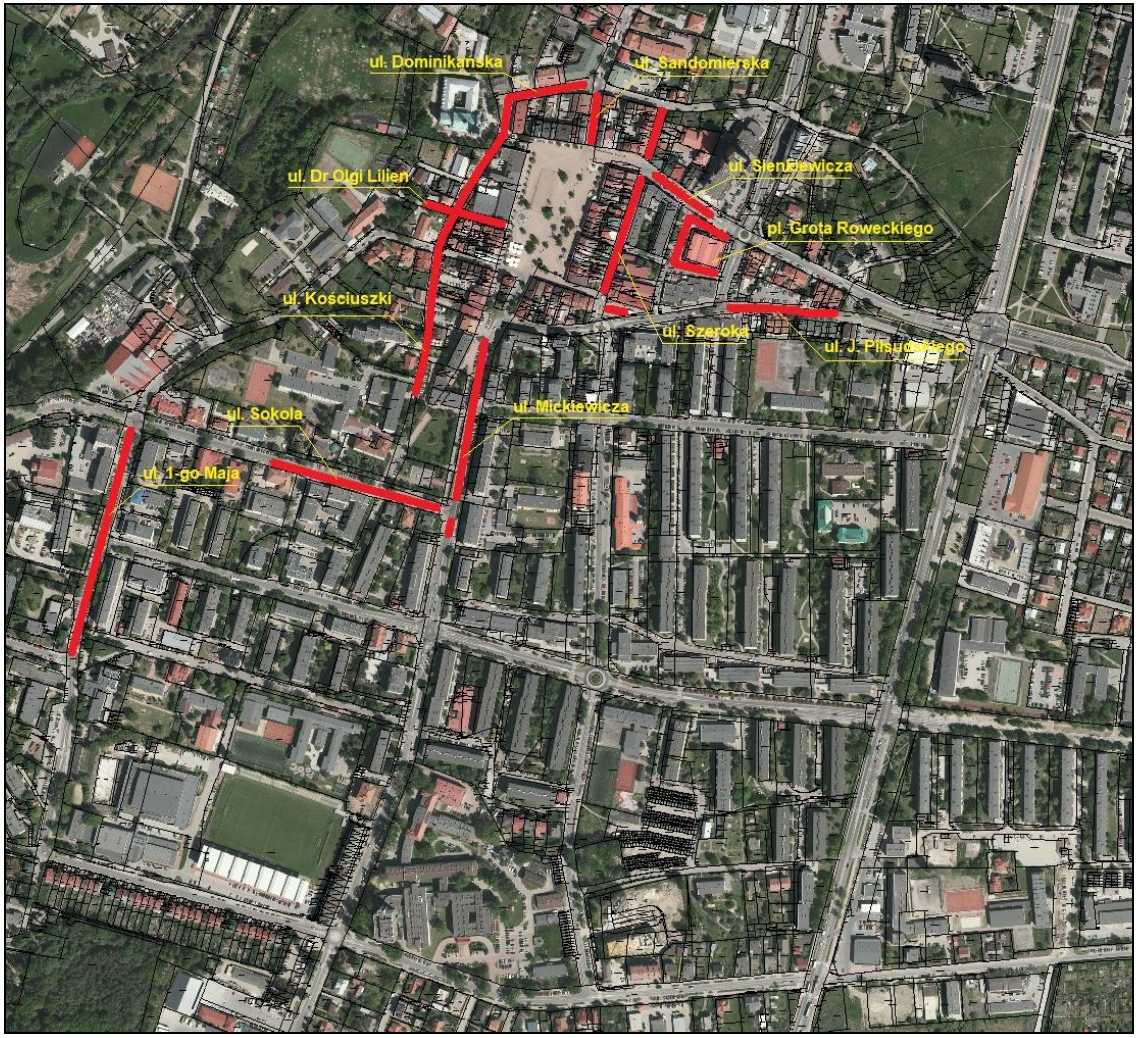 - Tadeusza Kościuszki (od ul. Dominikańskiej do parkingu przy Pl. Dra Antoniego Surowieckiego);