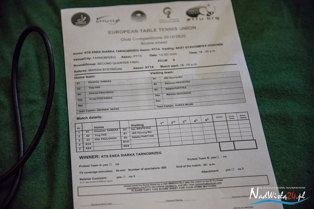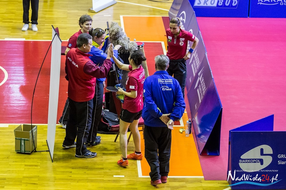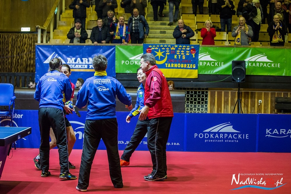 Czwartkowe spotkanie (łącznie z obsługą techniczną, arbitrami, zawodniczkami) oglądało nie więcej niż 200 osób. Należałem do tych tysiąca osób, które nie oglądały transmisji, ale po meczu z czystej ciekawości włączyłem Sportowy Wieczór w TVP Sport. Rzecz jasna liczyłem na jakaś krótką relację z Tarnobrzega, ale zamiast tego otrzymałem informacje o Robercie Kubicy, o Pucharze Hiszpanii, nawet o jakimś ultra triathlonie, hokeju itp. O ćwierćfinale Ligi Mistrzyń w tenisie stołowym ani słowa! Nawet nie dowiedziałem się, jakim wynikiem zakończyło się to spotkanie.