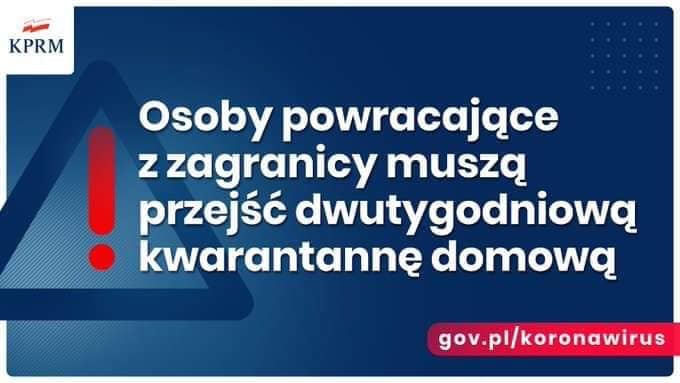 - 14 dniowa kwarantanna domowa dla Polaków wjeżdżających do kraju