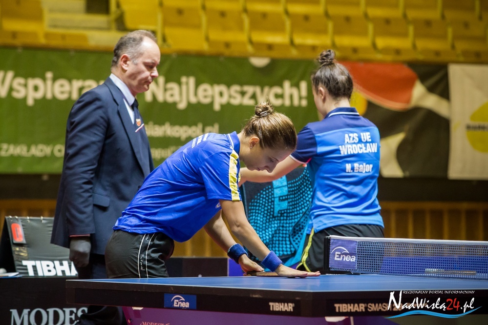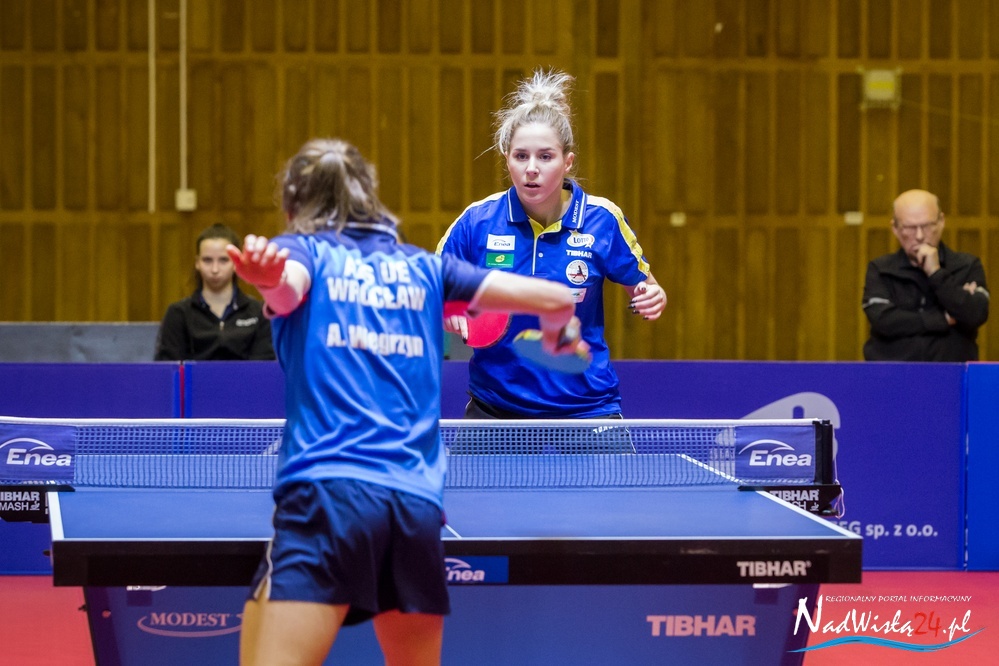 Dzień po meczu z zespołem z Luzino tarnobrzeska drużyna zmierzyła się z kolei z wicemistrzyniami z Wrocławia. W spotkaniu tym świetną formę potwierdziła Han Ying. Gwiazda tarnobrzeskiego zespołu w pierwszej grze pewnie pokonała Katarzynę Węgrzyn 3:0. Ze stratą jednego seta, swój zwycięski pojedynek z Natalią Bajor zakończyła z kolei Elizabeta Samara. Emocjonujący bój przy stole stoczyły Julia Ślęzak i Anna Węgrzyn. Mimo iż reprezentantka Tarnobrzega przegrywała już 0:2 to udało się się doprowadzić do tie breaka. W piątym secie, po wyrównanej walce Julia musiała jednak uznać wyższość rywalki z Wrocławia.