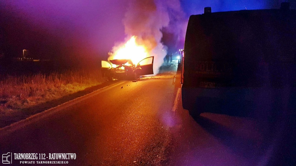 Uszkodzony volkswagen stanął w płomieniach. Policjanci natychmiast wyciągnęli jego kierowcę i zaczęli udzielać mu pomocy medycznej. W gaszeniu samochodu pomagali funkcjonariuszom świadkowie zdarzenia. Mimo reanimacji, którą po przybyciu na miejsce, przejęła załoga karetki pogotowia, życia mężczyzny nie udało się uratować. Golfem nie podróżowały inne osoby.