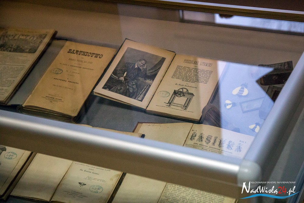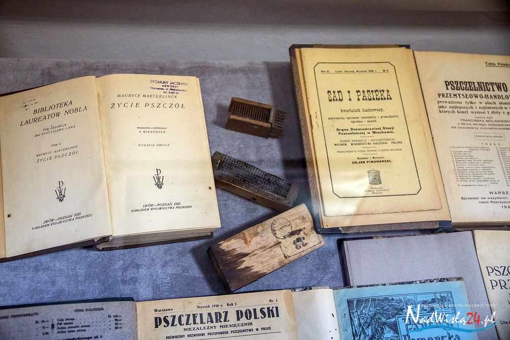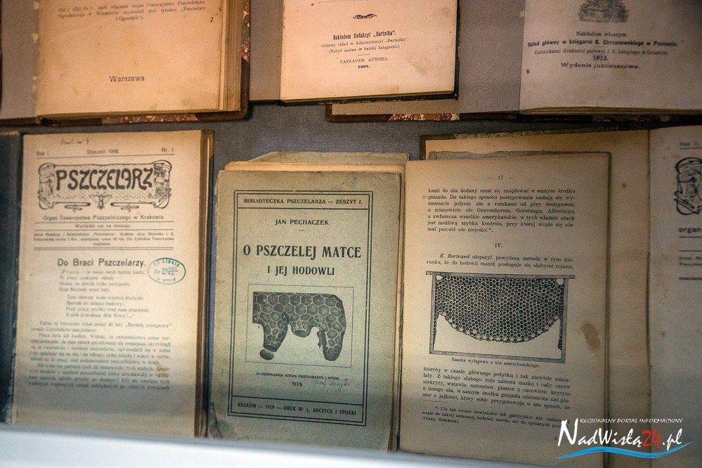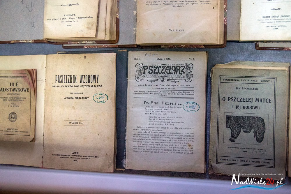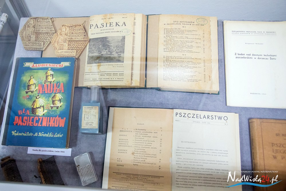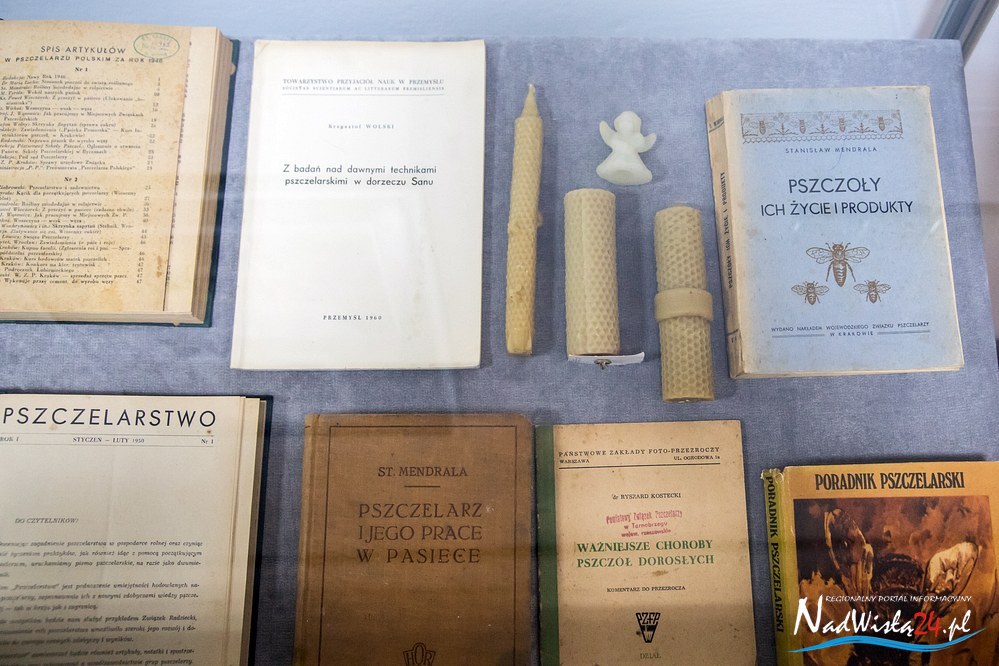 Ekspozycja „Pszczoły – bartnicy- pasiecznicy i wybitni pszczelarze” to przede wszystkim prezentacja fachowej literatury, jaka ukazywała się na terenie kraju w latach 1800 – 1967. Wśród poradników, przewodników i ogólnych opracowań na szczególną uwagę zasługują miedzy innymi: Pszczelnik doskonały czyli nauka z doświadczenia zebrana chodzenia około pszczół wydana we Lwowie w 1800 roku, Przyjaciel pszczół: Książka dla podźwignienia krajowego pszczelnictwa  Antoniego Misiewicza z 1863 roku, Bartnictwo Teofila Ciesielskiego z 1925 roku czy Ule polskie Stanisława Mendrali z 1939 roku. Literacką część ekspozycji uzupełniają archiwalne roczniki prasy specjalistycznej z lat 1875 – 1944 między innymi: Bartnik Postępowy, Pasiecznik Wzorowy, Pszczelnictwo polski i Pasieka. Wśród prasy uwagę przyciągają dwa numery  Bartnika Postępowego, w których opublikowane zostały informacje dotyczące działań pszczelarzy w Tarnobrzegu. Artykuł zamieszczony w styczniowym numerze Bartnika z 1923 roku informuje o powstaniu (22 marca 1922 roku) Powiatowego Towarzystwa pszczelniczego z siedzibą w Tarnobrzegu. Natomiast w numerze 4  z 1938 roku opublikowana została relacja z przeprowadzonego kursu dla pszczelarzy w Mokrzyszowie.