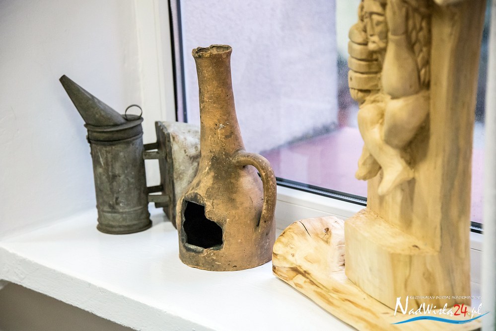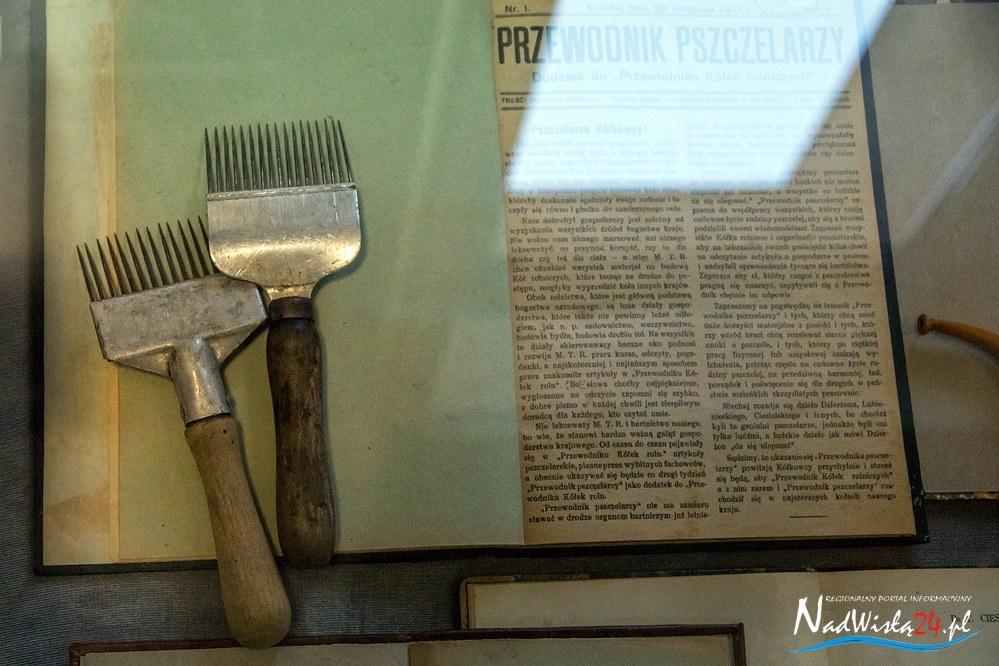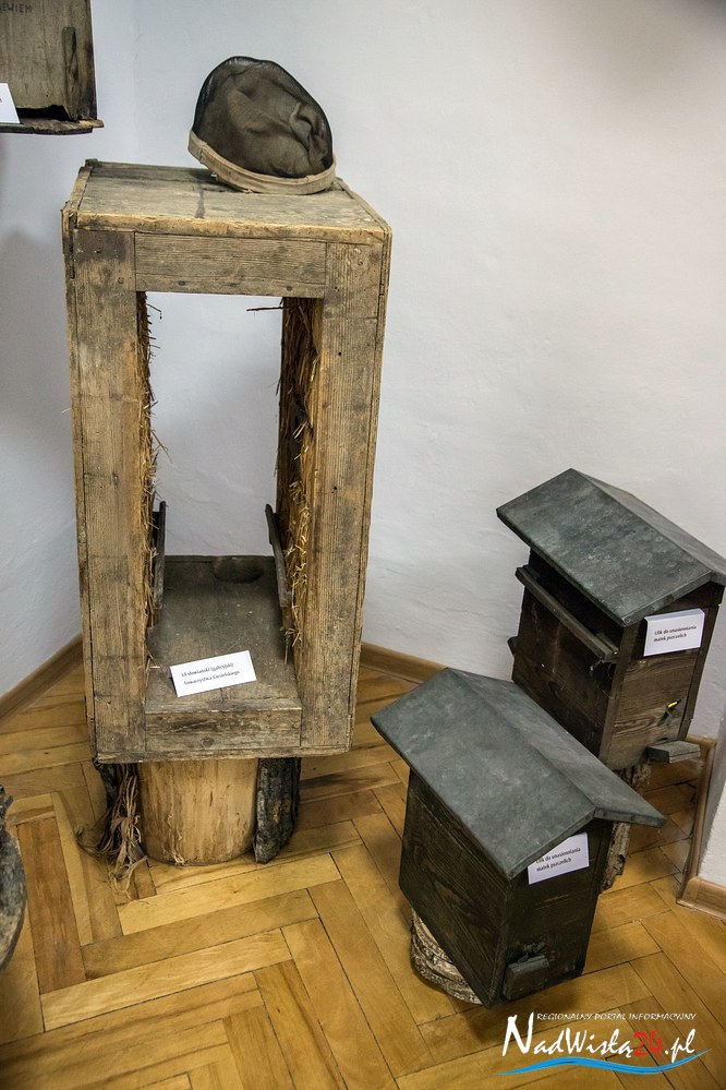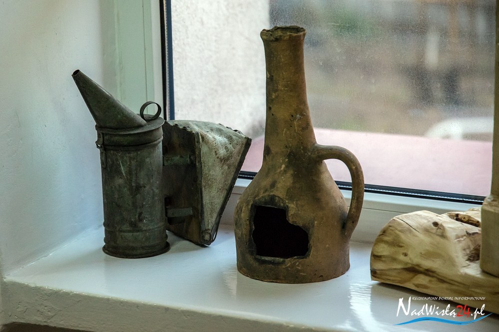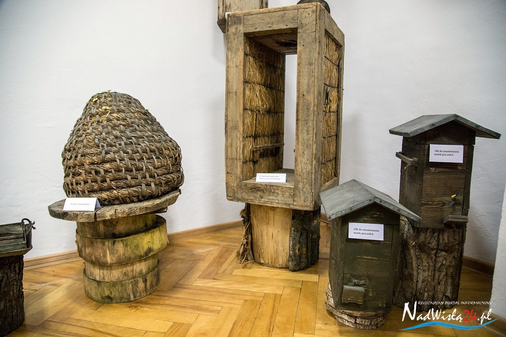 Całość ekspozycji uzupełniają zabytkowe przedmioty stosowane w pasiekach i przy produkcji miodu. Ul słowiański (galicyjski), rojnica (1943 rok), miodarka, kószka wielkopolska, forma do wyrobu świec (gromnic), widelce do odsklepiania miodu, drewniane, metalowe i współczesne-plastikowe klatki na pszczele matki, urządzenie do zdejmowania rojów pszczelich, podkurzacze wykonane metodą „domową”, jak i profesjonalne oraz  drewniane naczynia na miód to tylko niektóre z prezentowanych obiektów przechowywanych  z wielkim pietyzmem przez pszczelarzy.