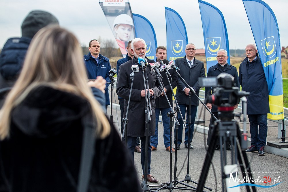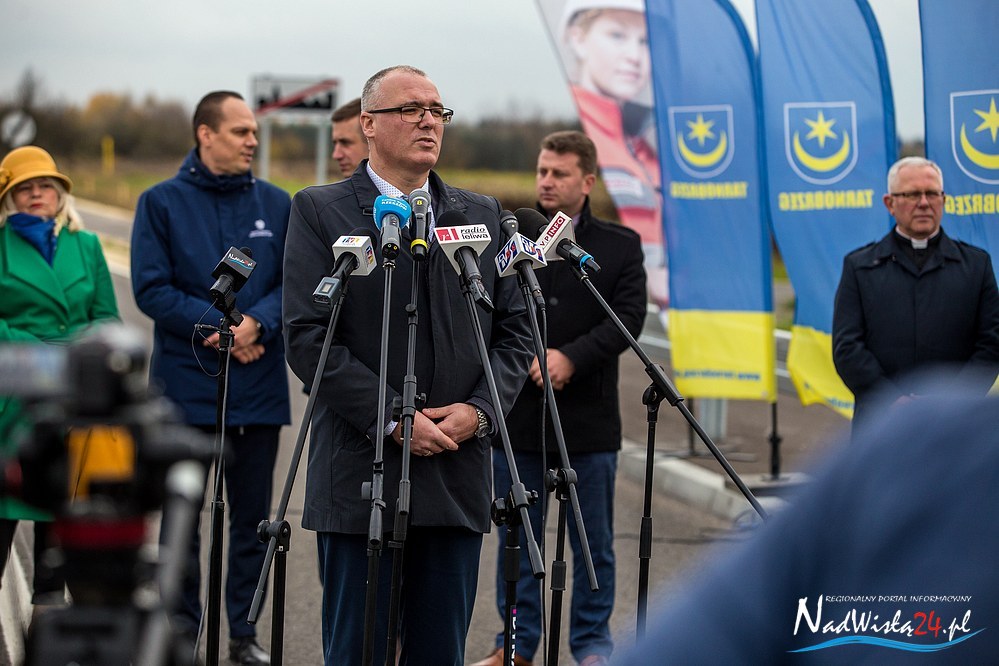 – Jesteśmy świadkami wydarzenia historycznego, na które Tarnobrzeg czekał bardzo długo – do uczestników wydarzenia zwrócił się prezydent Tarnobrzega Dariusz Bożek. Jak zaznaczył, o obwodnicy mowa była, gdy był jeszcze małym chłopcem. – Jednak to ostatnie lata przyniosły konkretne działania. Chociaż nie zawsze szczęśliwe. W kwietniu 2016 roku podpisano pierwszą umowę na budowę drogi obwodowej, wtedy z firmą Energopol, a dzięki olbrzymiemu wsparciu województwa podkarpackiego Tarnobrzeg otrzymał na realizację tego zadania ponad 42 mln złotych. Niestety, rok późnej wykonawca ogłosił upadłość. Podjęliśmy karkołomne starania, chociaż wątpiono, że nam się uda, by jednak zawalczyć o tę drogę. Udało się. Tu podziękować trzeba wielu osobom – mówił prezydent Tarnobrzega, a dziękując zwrócił się do wicemarszałek województwa podkarpackiego, Ewy Draus, która, jak zaznaczył, zawsze była sprzymierzeńcem tej sprawy.