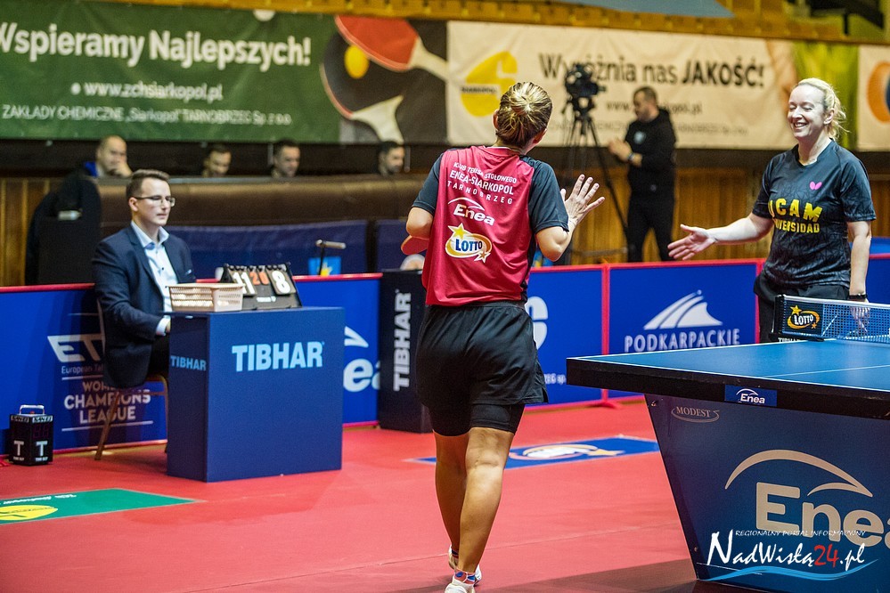 Podobnie jak w pierwszym spotkaniu taki i w rewanżu w Tarnobrzegu, punkty dla Enea Siarkopolu wywalczyły Fu Yu, Yang Xiaoxin i Elizabeta Samara. Mecz we własnej hali tarnobrzeska drużyna rozstrzygnęła na swoją korzyść w niecałe półtorej godziny, nie pozwalając rywalkom choćby pomarzyć o wyeliminowaniu faworyta. Dość powiedzieć, że tylko Fu yu oddała rywalce Marii Xiao jednego seta, w pozostałych partiach Yang Xiaozin pokonała Dorę Madarasz 3:0, w takim samym stosunku Samara rozprawiła się Silvią Ererlyi.
