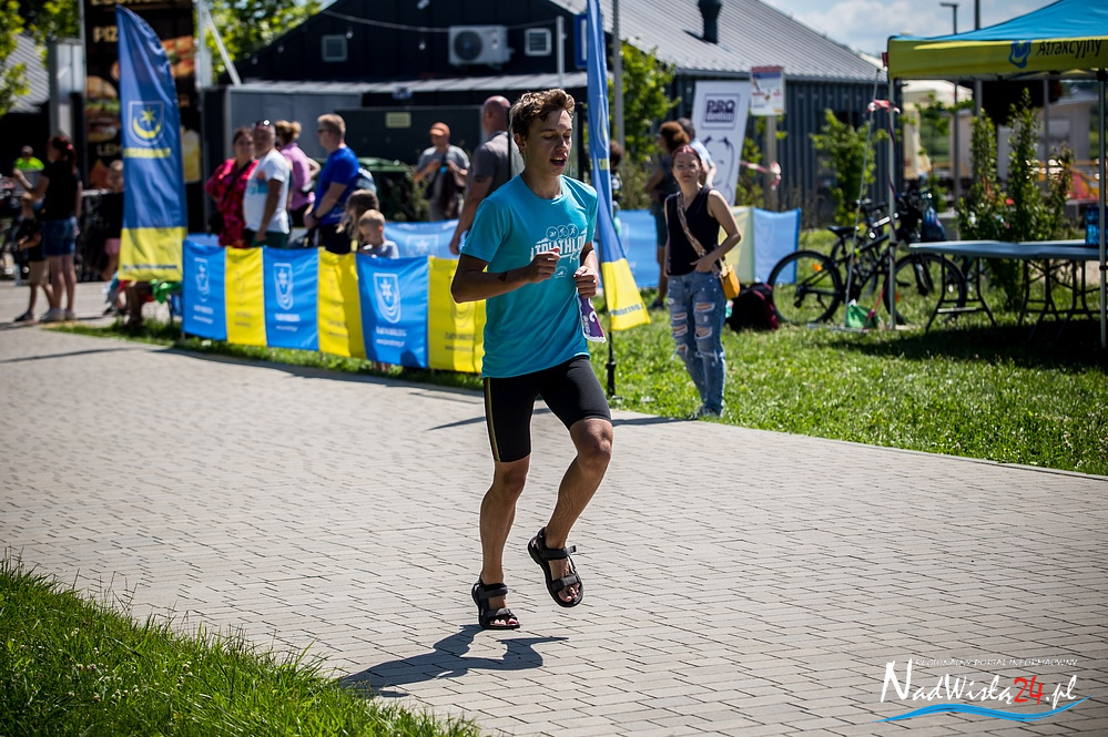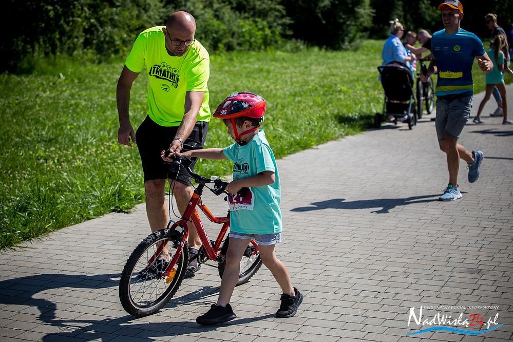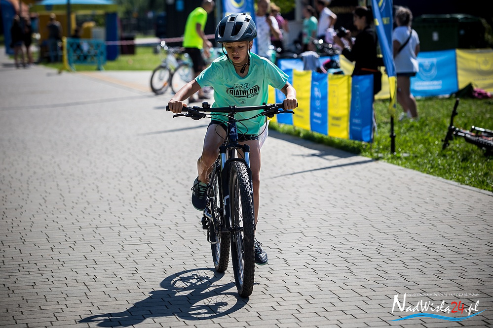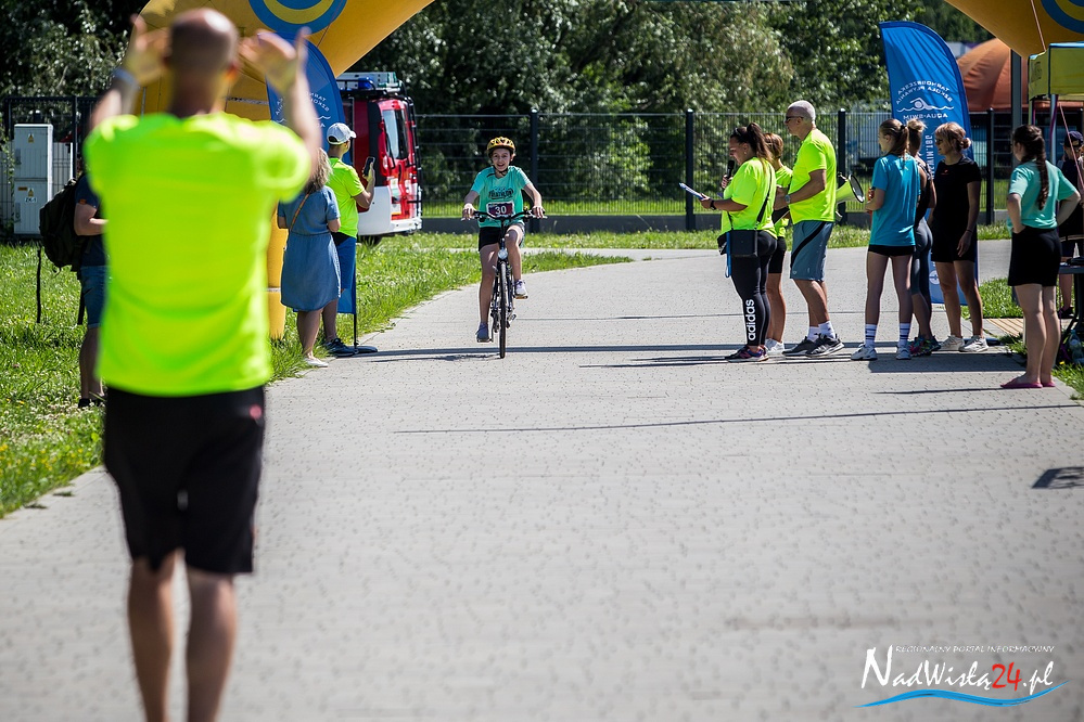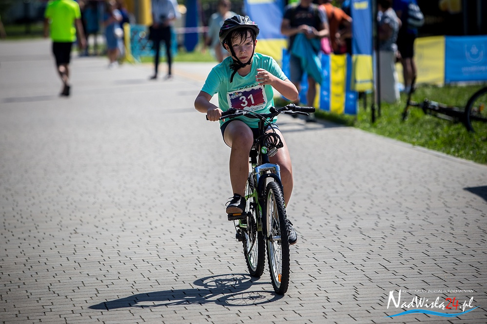 Niespełna siedmioletni Gabryś Biskup z Przyszowa w powiecie stalowowolskim był najmłodszym uczestnikiem zawodów z cyklu Triathlon Kids, których czwarta edycja odbyła się w miniona sobotę nad Jeziorem Tarnobrzeskim. Do sportowej rywalizacji dzieci i młodzież zaprosiła tarnobrzeska szkoła pływania Aqua Swim.