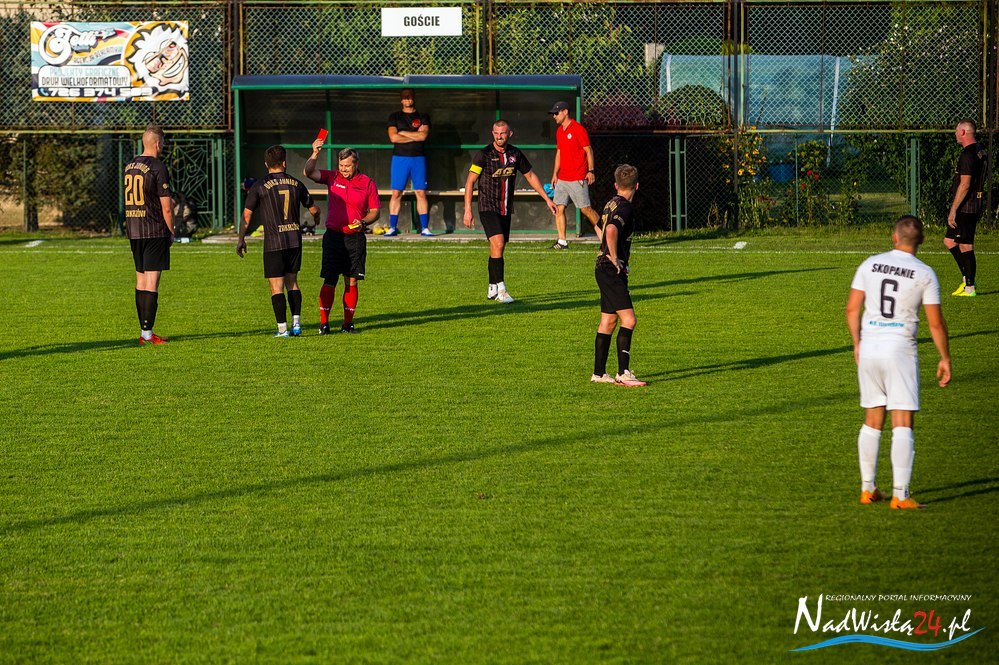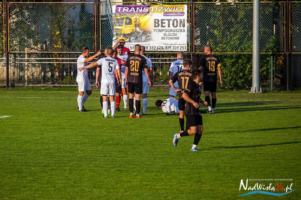 Junior Zakrzów zremisował 3:3 z Wisanem w Skopaniu, w meczu 3. kolejki w stalowowolskiej klasie A, w grupie 1. Od 54. minuty Junior grał w osłabieniu, po tym jak druga żółtą i w konsekwencji czerwoną kartką ukarany został Michał Żyła.