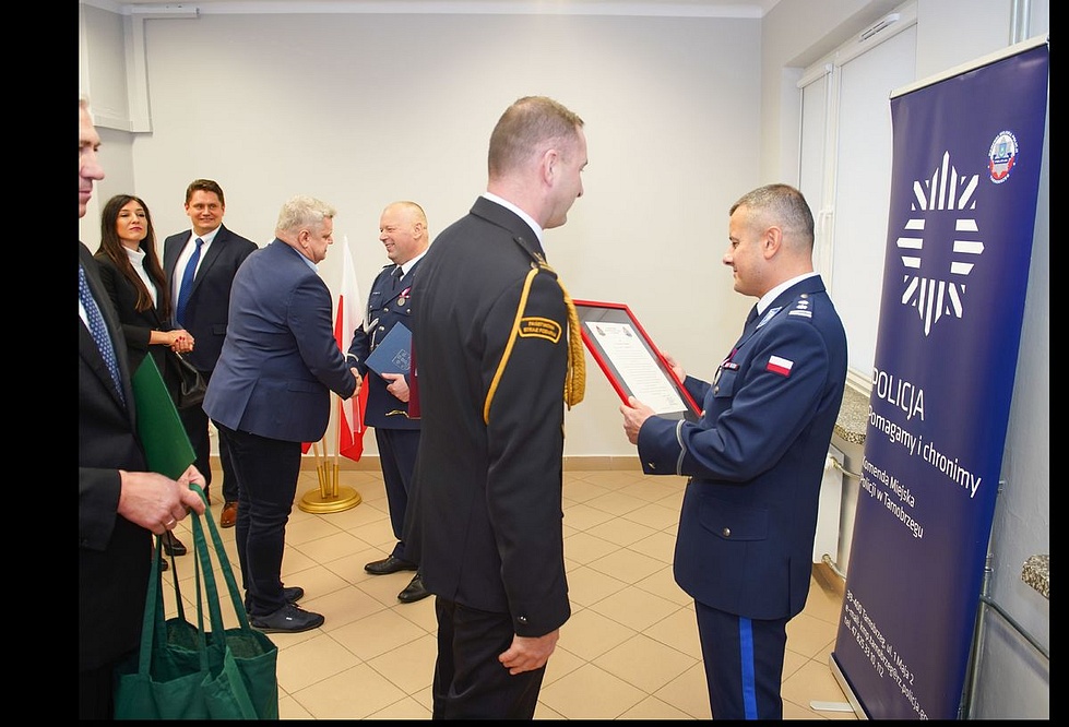 W dalszej części uroczystej zbiórki, zaproszeni goście składali podziękowania za wieloletnią współpracę z samorządem miasta i powiatu tarnobrzeskiego oraz wspólne działania na rzecz poprawy bezpieczeństwa lokalnej społeczności.