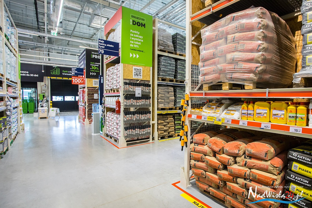 - około 30 tysięcy artykułów budowlanych, remontowych i dekoracyjnych, w tym rozwiązania ekologiczne,