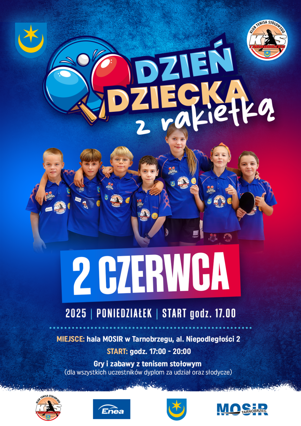 W godzinach 17:00 – 20:00 gry i zabawy z tenisem stołowym. Dla wszystkich uczestników wydarzenia pamiątkowy dyplom za udział oraz słodycze.