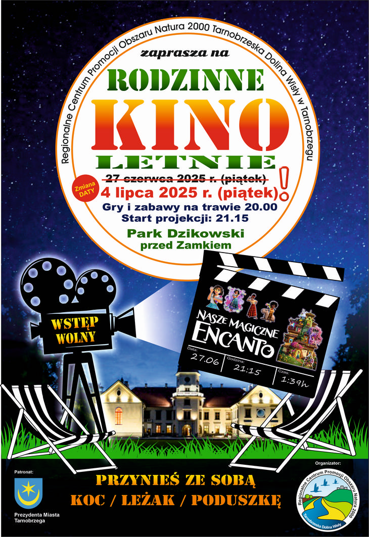 Tarnobrzeg: Kino Letnie przełożone by NW2427/06/202507/07/20250Z uwagi na niekorzystną prognozę pogody Kino Letnie w dniu dzisiejszym nie odbędzie się – informuje Centrum Natura 2000 w Tarnobrzegu.Nowy termin wydarzenia to 4 lipca.