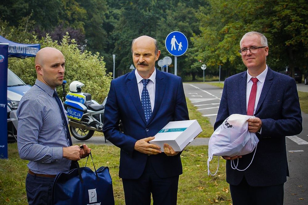 Podczas wydarzenia Grzegorz Kozik dyrektor WORD Tarnobrzeg wręczył Jerzemu Stelmachowi dyrektorowi Zespołu Szkół im. ks. Stanisława Staszica profesjonalny sprzęt do nauki pierwszej pomocy (fantom, defibrylator, kamizelka do zakrztuszeń ACT Fast).