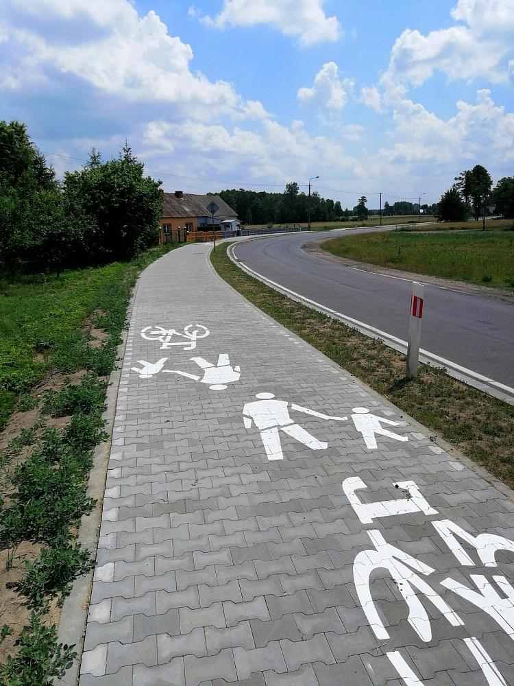 Na tym odcinku akurat nie ma drogi dla rowerów czy drogi pieszo-rowerowej – jest zwykły chodnik (droga dla pieszych) więc rowerzyści powinni się poruszać asfaltową jezdnią.