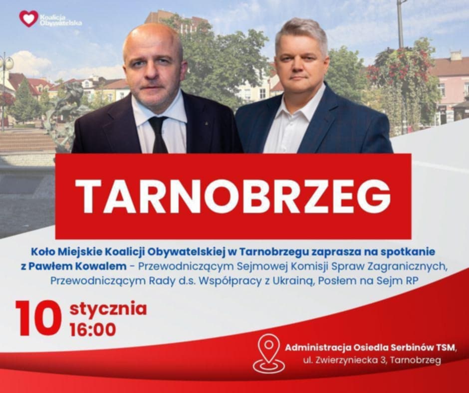 Portal NadWisłą 24.pl zaprasza na transmisję spotkania z posłem RP Pawłem Kowalem, do udziału w którym zaprasza Koło Miejskie Koalicji Obywatelskiej w Tarnobrzegu.