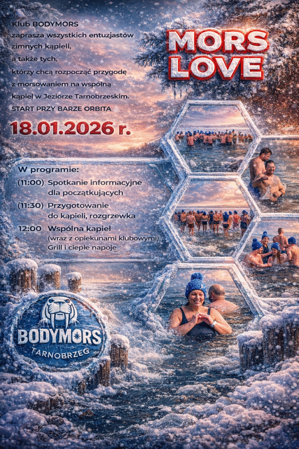 Klub BODYMORS Tarnobrzeg zaprasza na cykliczną imprezę MorsLove nad Jeziorem Tarnobrzeskim. Spróbuj swojej pierwszej, lodowatej kąpieli i poznaj tajniki morsowania!