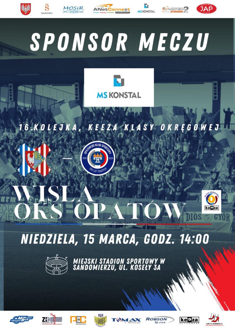 Portal NadWisłą24.pl zaprasza na transmisję meczu 16. kolejki świętokrzyskiej klasy okręgowej pomiędzy Wisłą Sandomierz a OKS-em Opatów. Spotkanie inaugurujące rundę wiosenną rozpocznie się w niedzielę 15 marca o godzinie 14:00.