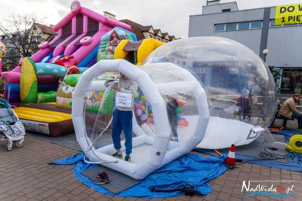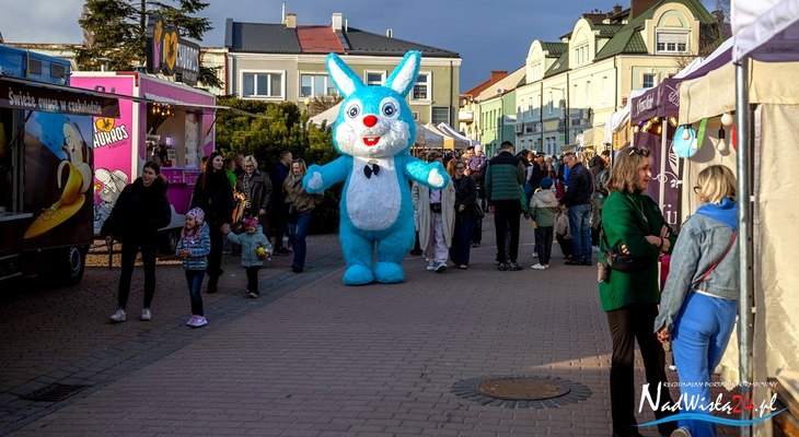 Na placu można było również spotkać wielkanocnego zająca, co dopełniło rodzinny charakter wydarzenia trwającego od piątku do niedzieli.