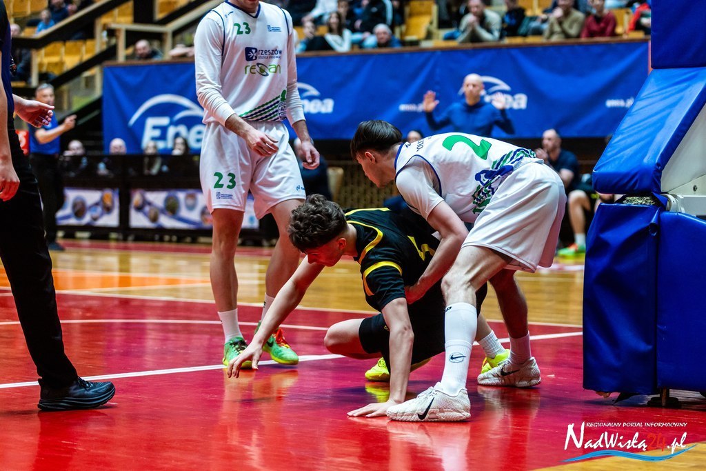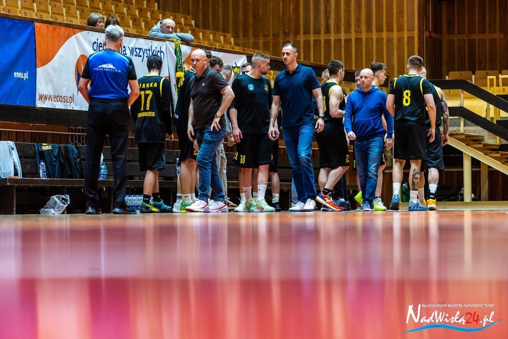 W zespole Dariusza Szczucińskiego zabrakło kilku kluczowych graczy, m.in. Mateusza Gazarkiewicza, Aleksego Janca i Wiktora Rycerza. Mimo to tarnobrzeżanie kontrolowali mecz przez trzy kwarty, budując solidną zaliczkę. W ostatniej części gry szansę występu otrzymali zawodnicy rzadziej pojawiający się na parkiecie, co w połączeniu z ambitną postawą gości doprowadziło do bardzo nerwowego zakończenia.