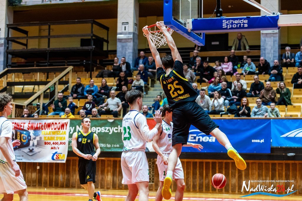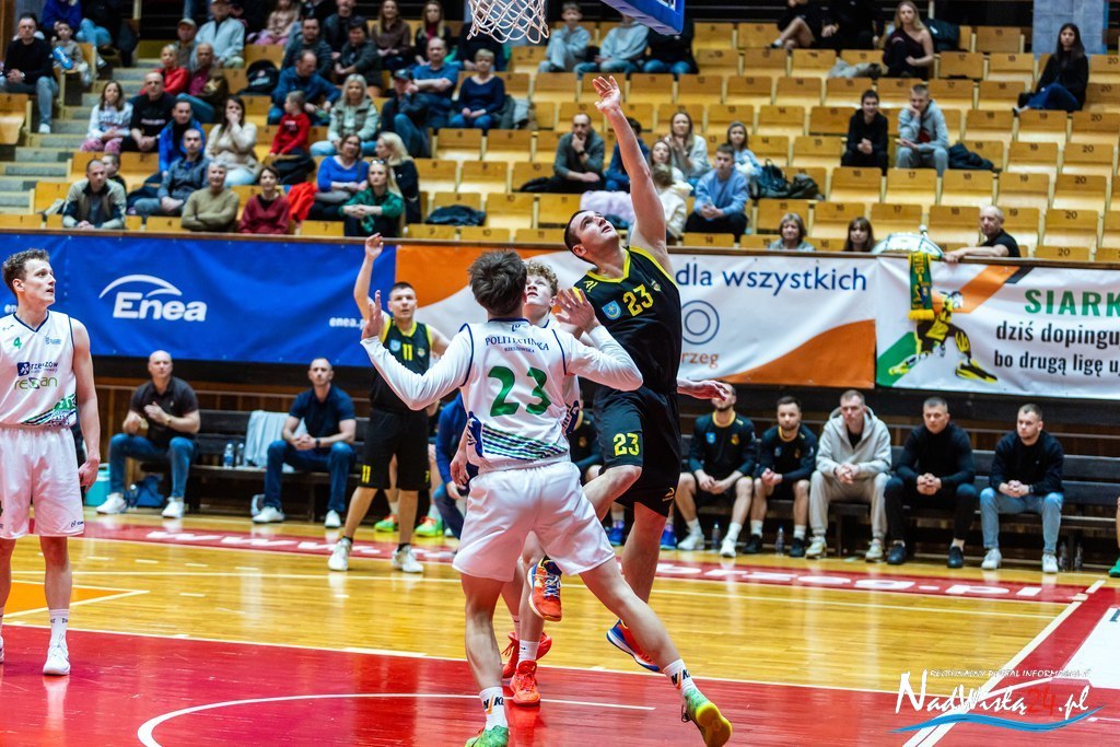 Koszykarze Siarki Tarnobrzeg przypieczętowali pierwsze miejsce w tabeli, wygrywając ostatni mecz fazy ligowej z AZS Politechniką Rzeszowską. Choć gospodarze prowadzili przez większość spotkania, rzeszowianie w ostatniej kwarcie zniwelowali niemal całą stratę, co zapewniło walkę o wynik do ostatnich sekund.